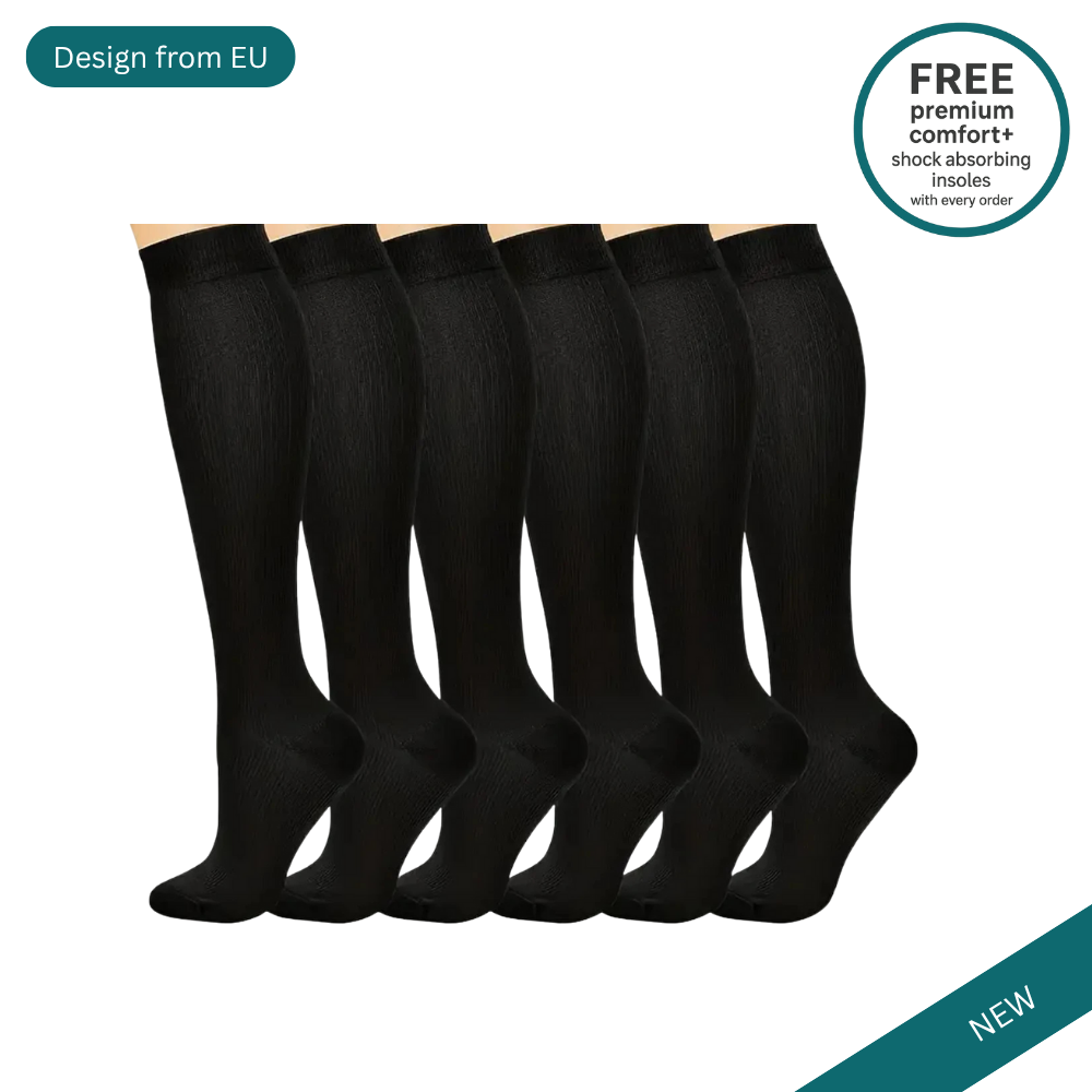 6 Pairs Solid Color Compression Socks Nurse Compression Socks Black Sk